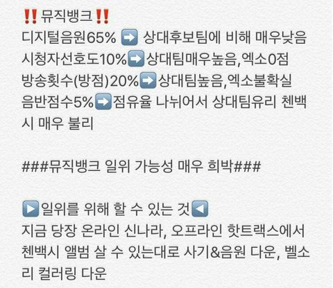 아무리 백현이가 1위안해도 괜찮다고 하는데 진심으로 괜찮을까 나는 일부러 우리 부담감 안줄라고 그러는거같아 우리가 아무리 백현이말 잘 듣고했어도 이번건 듣지말고 1위시켜주자 자기들 최애가 첸백시에 없어도 얘네 엑소야 엑소상안받게할꺼야..? 얘네 상못받으면 톡선에 뜨고 난리날껄 얘네가 상못받는건 엑소가 상못받는거야 엑소첫유닛인데 상한번 안받고 끝내도 괜찮아..? 제발 도와주라