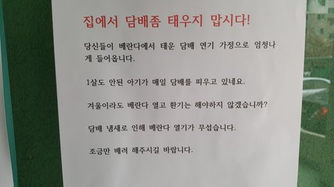 아파트 주민들이 담배피길래 어떤주민이 주민들한테 담배피지말라고 이렇게씀