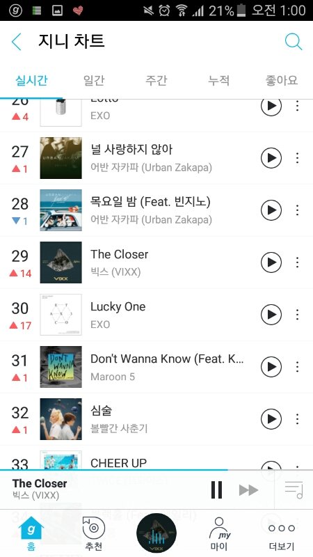 서양수박이 2등 떨어지긴 했지만....지니가 14등 오름 그니까 좀만더하자 난이제 자러가야지...