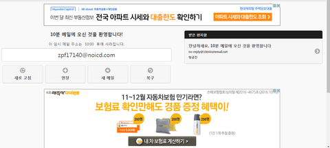 동의한다음에 https://10minutemail.net/m/?lang=ko 이 사이트에 들어가면 이렇게 뜰텐데