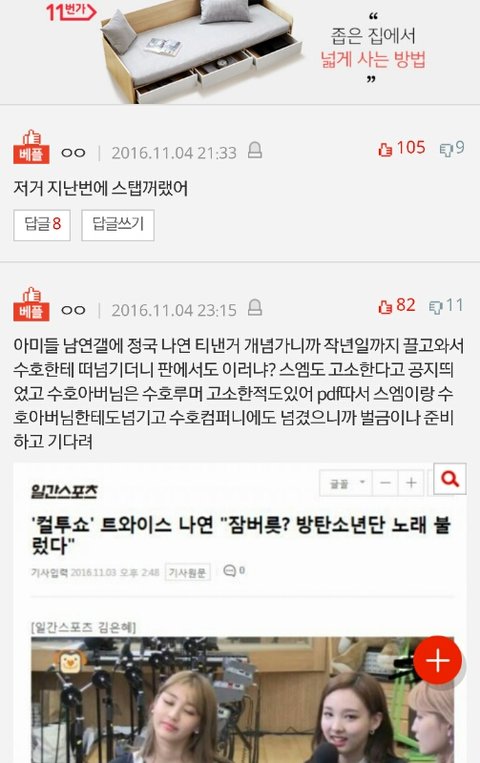 톡선에 나연 수호글에서 우리 머리채잡힌다
