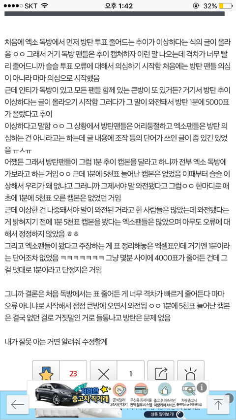 투표수 올라가는 추이 이상하다고 타팬이 머리채 잡아서 난리났었나봐