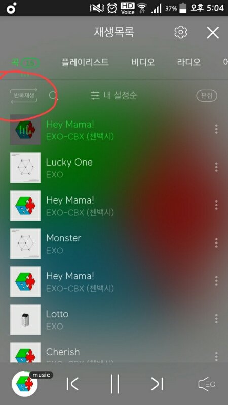 아오 업뎃 괜히했나 손에 안 익ㅇ네 왼쪽 상단에 반복재생 해제 맞지?