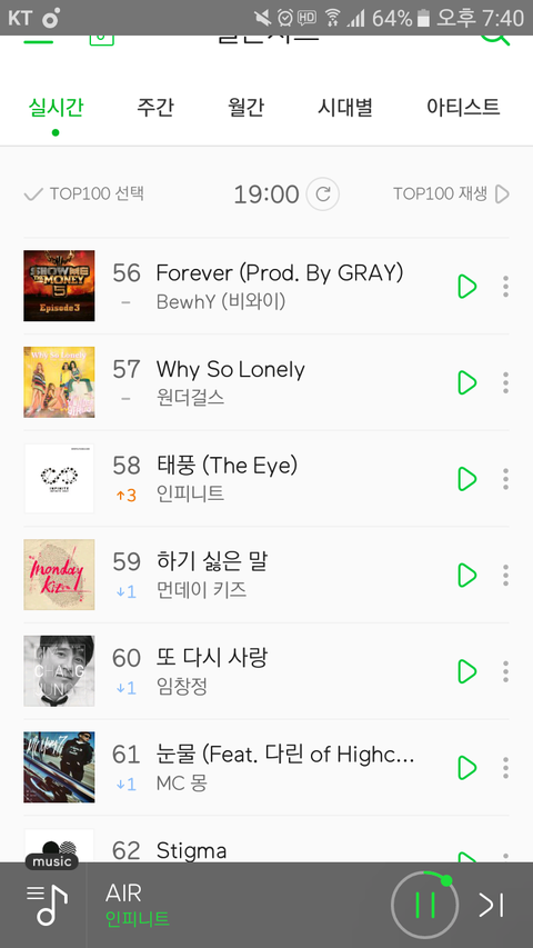 지금 차트 완전 빡세서 더 열심히 돌려야 살아남을 수 있어 그러니까 파이팅하자 !!