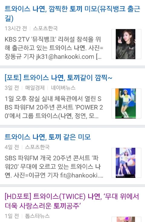나연은 토끼를 닮아서 별명이 토끼이고 기자들도 토끼라고 부르잖아?