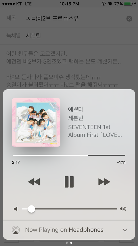 승철이가 불러줬어ㅠㅠ 바2브 랩을 해줘써ㅠㅠㅠ