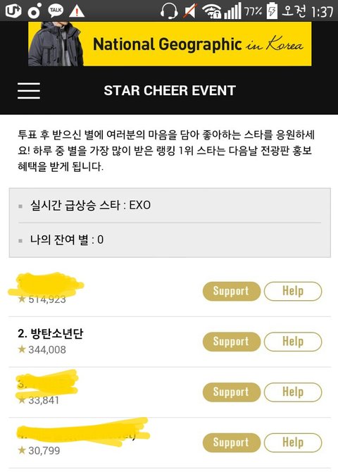 우리 m!a!m!*투표 스타응원 있잖아 그거 난 하루라도 전광판에 방탄이들 나왔으면 좋겠어!! 그래서 별을 모아 뒀다가 총공으로 날짜 정해서 그때 별 모아주면 안되니? 이것 좀 논의해보자 다들 어떻게 생각해? 문제있을시 둥글게 말해줘~~
