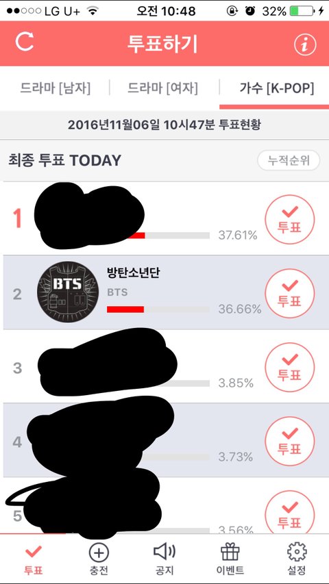 aa@a 방금까지 1위이였는데 또 2위으로 밀려났다 ㅠㅠ 마마나 다른것들 다 투표 열심히 하고있는거 맞지? 이삐들??? 열시미하자 스밍도 열심히 하구 !!!!❤️