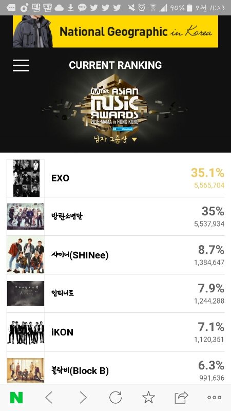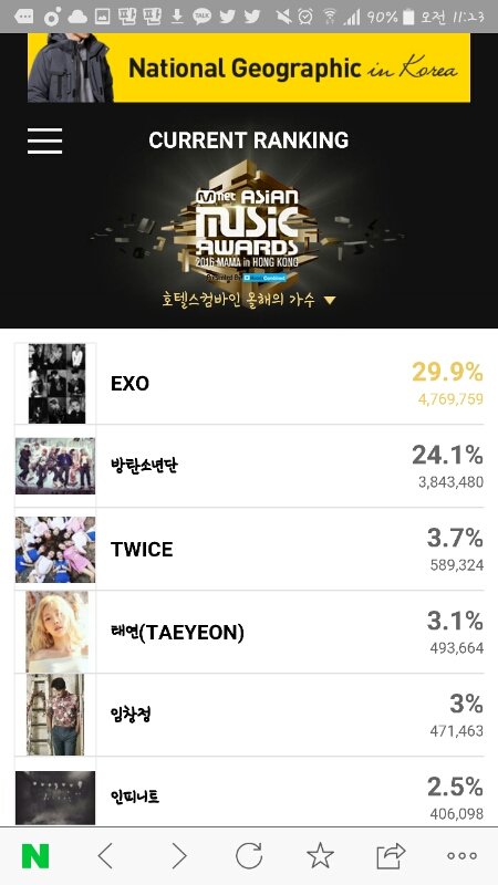 EXO있는 투표 추이