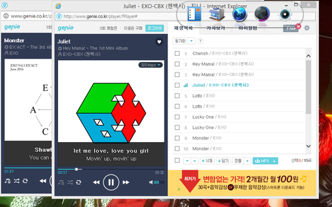 내가 지니 계정 여러개에 100회권 조카 많아서 크롬으로 하나 익스로 하나 돌리고 있거든? 물론 둘 계정 다름ㅇㅇ 일케 돌려도 되려나???