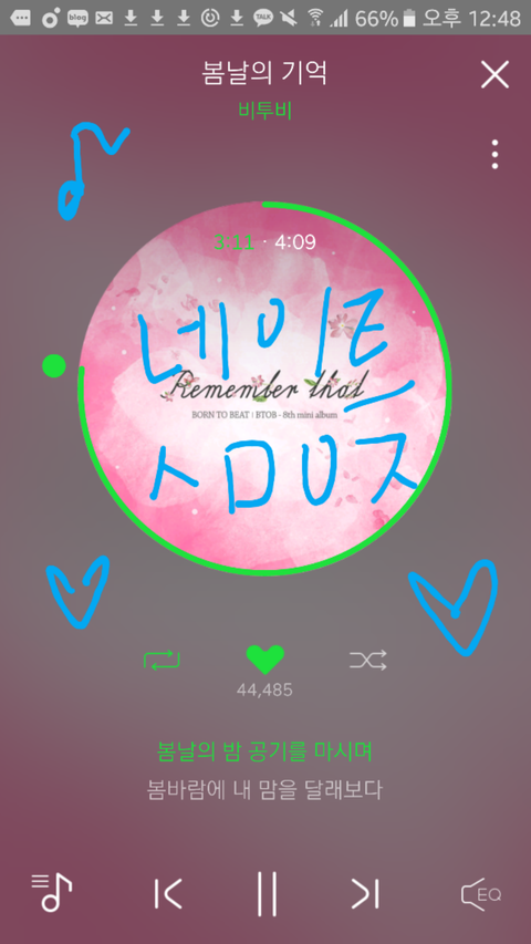 나 봄날의 기억 진짜 많이 넣고 내 곁서 하나 들어있는디 내곁서 빼고 봄기 넣는게 더 나으려나?? 스밍인증 포함함❗
