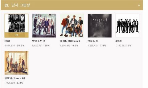 그런데 올해의 00 을 제외한 나머지 부문들 ( ex . 남자 그룹상, 댄스 퍼포먼스상 ) 은 따로 투표 가능한 방법이 없음. 올해의 00 을 제외한 나머지 모든 부문들과 함께 투표를 해야만 한다는 거임. 때문에 투표 수 총합 수도 같아야 하고