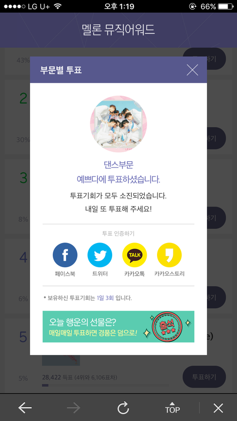 난 너무 1위시켜줘야해! 에만 집중하다보니까 너무 무덤덤하게 스밍돌리는게 습관이 되버리고 무덤덤하게 투표하게 된것 같아