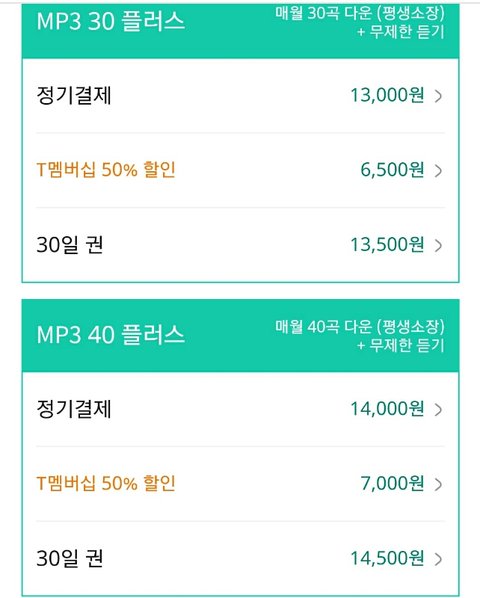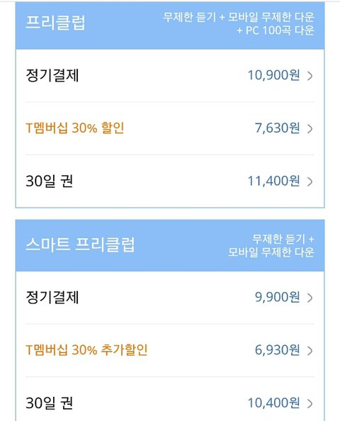 다들 위에걸로 결제하잖아 특히 두번째꺼 무한스트리밍+무한다운 이걸 결제를 하잖아