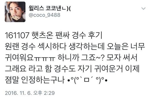 경수가 자기의 귀여움에 대해 반박하는걸 포기했구나