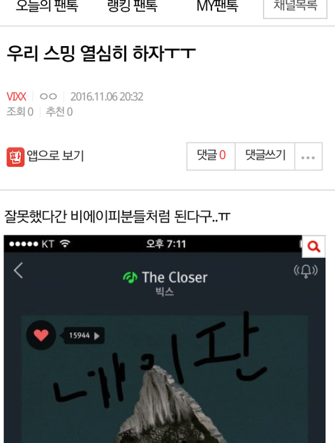 저희가 궁금한 것은 왜 글쓴 의도에 맞지 않는 비에이피를 언급 했는지, 타 팬덤에 대한 비방이 담겨있는 글이 어째서 추천수가 그렇게 높은지, 왜 조회수는 높으면서 수정요구 댓글은 극소수인지, 왜 수정을 하지 않았는지 입니다.