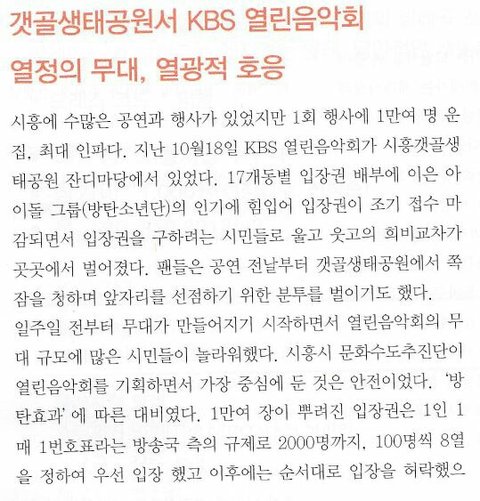 엄청나 엄청나 지금까지 시흥시에서 열린 행사 중 최다관객이었데!!! 역시 믿고 듣는 방탄소년단!!! BTS + ARMY = WINGS !!!