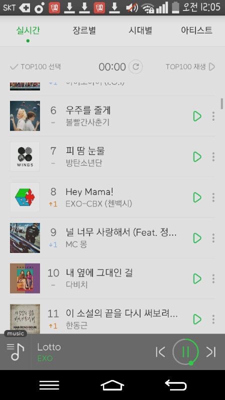 이 샹년들... 12시 멜1론차트