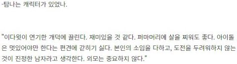 경수야 너한텐 그럴지 몰라도 난 중요해 니가 지금 모습으로 데뷔했다면 인기 있었을것같니? 연기유입 한명도 없던데 정신 좀 차리길