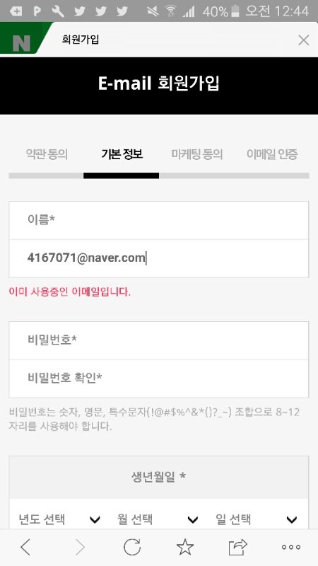 계속 계정 만드려고 하는데 이메일 인증으로 했거든? 근데 이미 사용중인 이메일이라면서 안보내져.. 아예 인증도 안되고.. 이삐들도 그래?