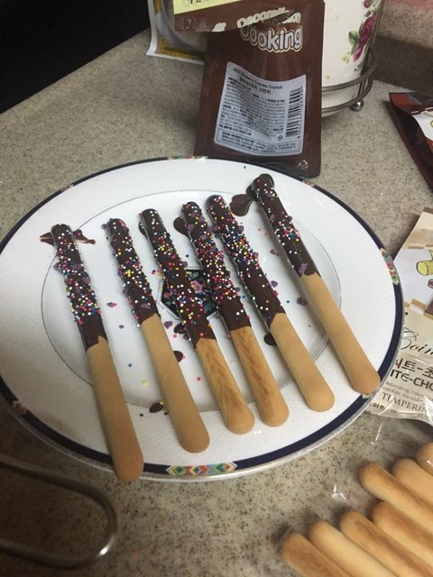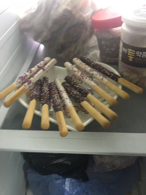 -와..초콜릿 한 봉지 양이 엄청나다 진짜 신나게 만들었더니 막대과자 양조절 실패 ㅎ그래도 그 위에 고명(?)가루(?)올렸더니 느낌 나온다