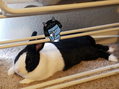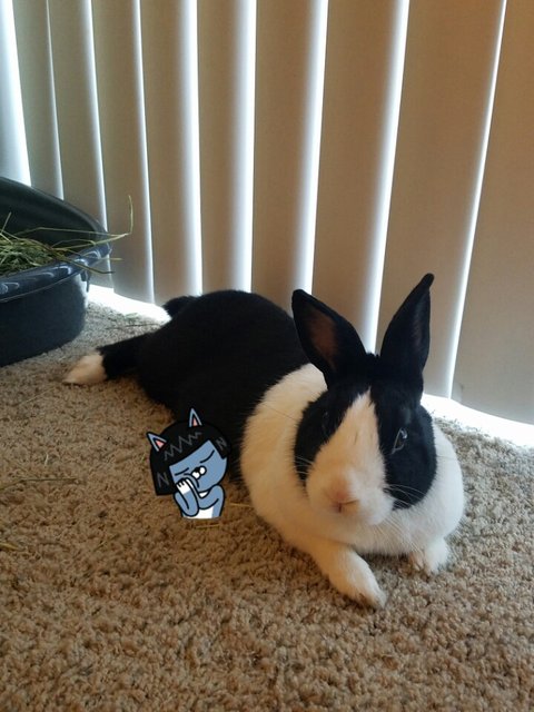 3마리 토끼 중 한마리가 저에게 다가와 매우 친근하게 저를 맞아주고, 보통 토끼들처럼 무서움을 많이 타고 겁을 먹고 도망가고 하지 않고, 문을 열고 들어온 저에게 반갑게 다가와 인사를 하는 녀석.