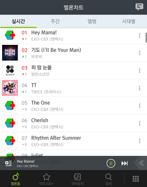 첸백시 5시6시 멜론 1위>.< (11위 내 8곡진입)