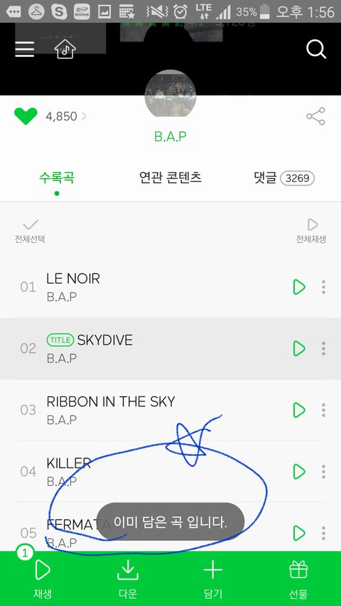 아래 담기에는 들어가지는데 플레이리스트에는 곡이 이미 들어가있으면 안들어가지네.