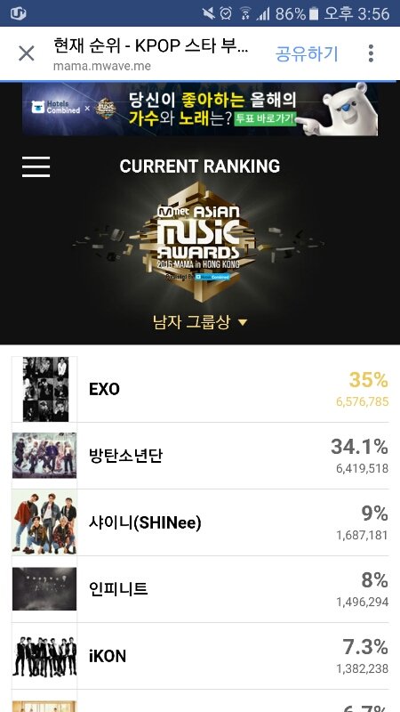 현재 mama투표상황