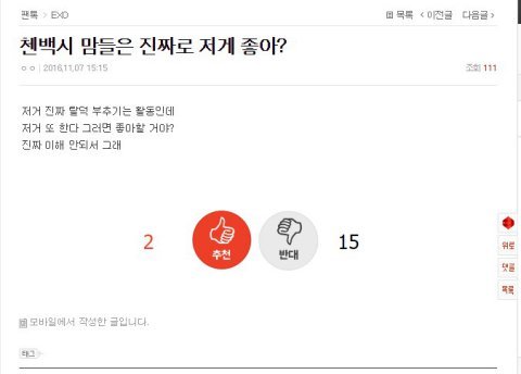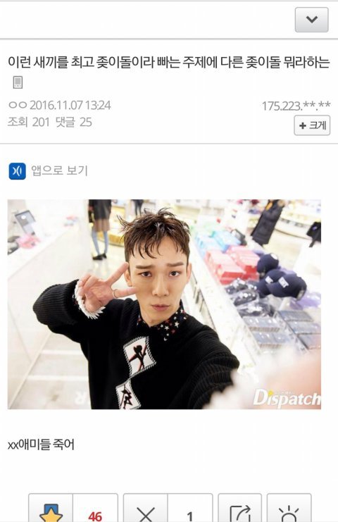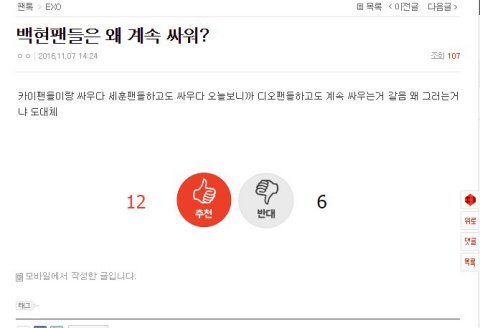 엑톡에서는 첸백시까고 시우민팬 백현팬 머리채잡고패다가 남연갤에서는 디오뺀 엑소멤버들 돌려까고 첸까글 개념보냈음