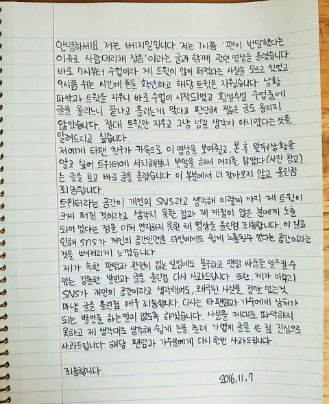 아미들 왜 자필사과문받았다고 까임..? 충분히 받을만한거 아닌가