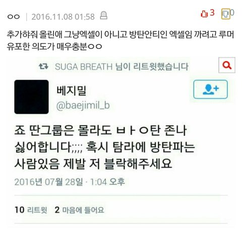 추가햐줘 올린애 그냥엑셀이 아니고 방탄안티인 엑셀임 까려고 루머유포한 의도가 매우충분ㅇㅇ