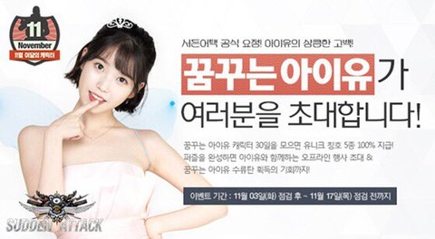 넥슨은 온라인 FPS게임 '서든어택'에 꿈꾸는 아이유 캐릭터를 출시했다고 3일 밝혔다.