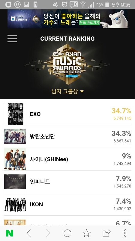 너네 맘마 투표 함????우리 꼴랑 0.4밖에 차이 안나 ㅅㅂ 어제 십분만에 천장터지고 천만뷰 뮤비스밍 화력 다 어디 갔냐 ㄹㅇ 투표 좀 해라 하는데 몆 분 걸린다고 ㅃㄹ 가서 하고 와