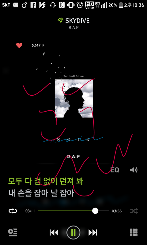 처음에 시작하자마자 바로 스카이다이브 하는데 이건 진짜 안무까지 세련되고 멋짐... 엠씨대본중에 이번 앨범이 비에이피의 클래식하고 업그레이드된 컨셉이라 했었는데 진짜 딱 그 표현이 맞는듯 이번 스카이다이브가 비에이피만이 할 수 있는 또 지금까지 중에 제일 발전된 곡인거 같아 비에이피의 모든 매력을 끌어모아서 폭발시킨 느낌 예전엔 파워풀한 쎈캐였다면 지금은 거기에 세련됨을 더했다고 생각해