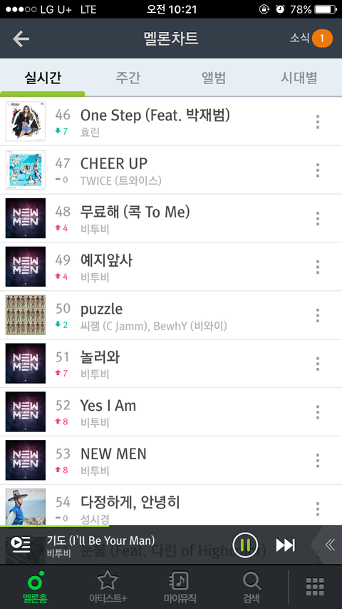 기도13위로하락+수록곡들상승+봄날10칸업
