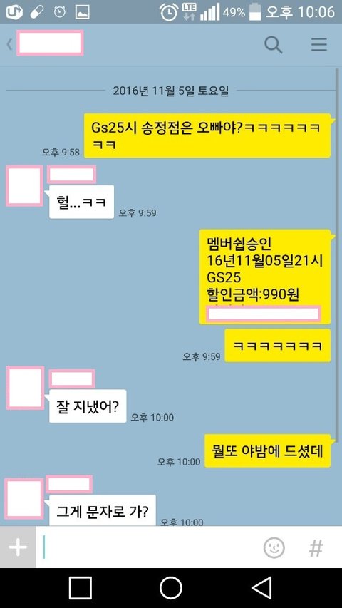 확인해보니 GS25시 멤버쉽 승인문자.