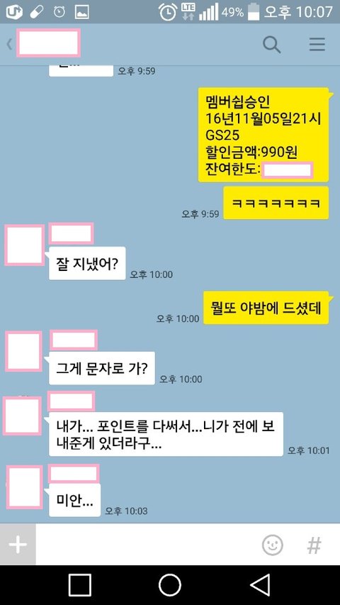 주변에 편의점도 없던 상황에 뭐지 싶어서 멤버쉽에 들어가보니 내가있는 동네와 완전 다른동네에서 누가 썼더라구요.