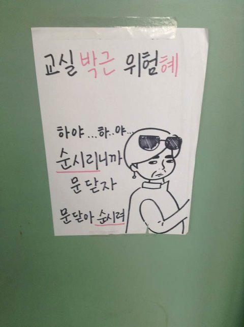 ㅋㅋㅋㅋ학교에서 애들이 뒷문 열고다닌다고 붙여놨닼ㅋㅋㅋㅋㅋㅋㅋㅋㅋ그림 개잘그렸엌ㅋㅋㅋ하야...하..야....