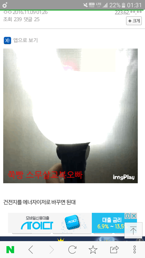 이것봐 건전지 에너자이저로 바껴끼면 실명밤 된데!!!