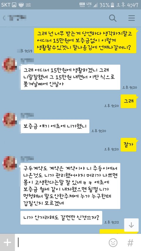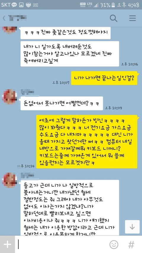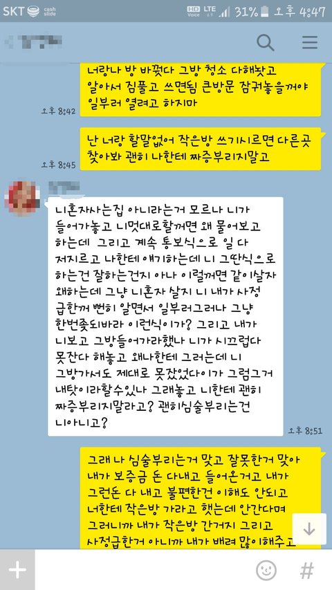 결국엔 방을 뺀다는 이야기까지 해주더라구요ㅋㅋㅋ