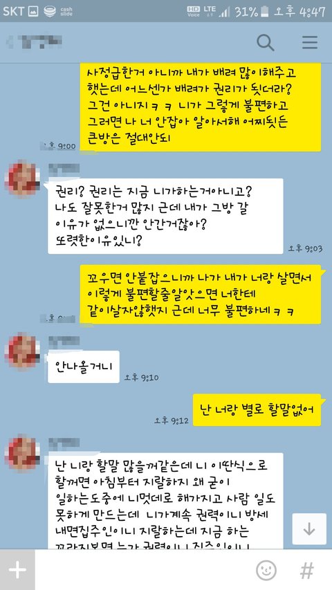 어느날 a가 b때문에 조금 고민이라면서 톡이왓엇습니다