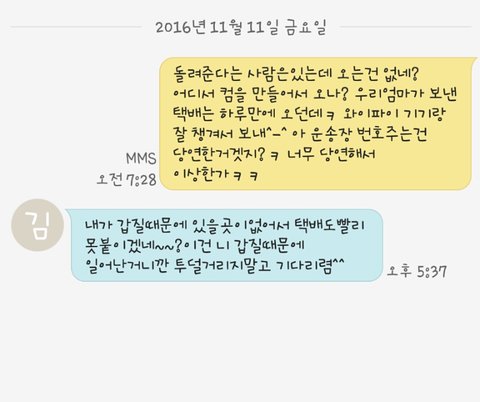 a는 b가 택배 착불로 보낼까봐 무섭다곸ㅋㅋㅋㅋ