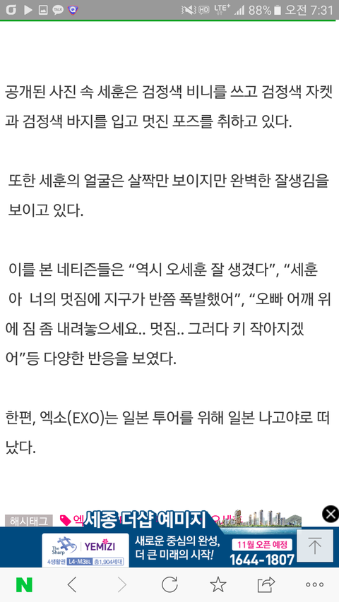ㅋㅋㅋㅋㅋㅋㅋㅋㅋㅋㅋ또한 세훈의 ㅋㅋㅋㅋㅋㅋㅋㅋㅋㅋ얼굴은 살짝만 보이지만 완벽한 잘생김을 보이고있닼ㅋㅋㅋㅋㅋㅋㅋㅋㅋㅋㅋㅋㅋㅋㅋㅋㅋㅋㅋㅋㅋㅋㅋㅋㅋㅋㅋㅋㅋㅋㅋㅋㅋㅋ기자분 팬인가