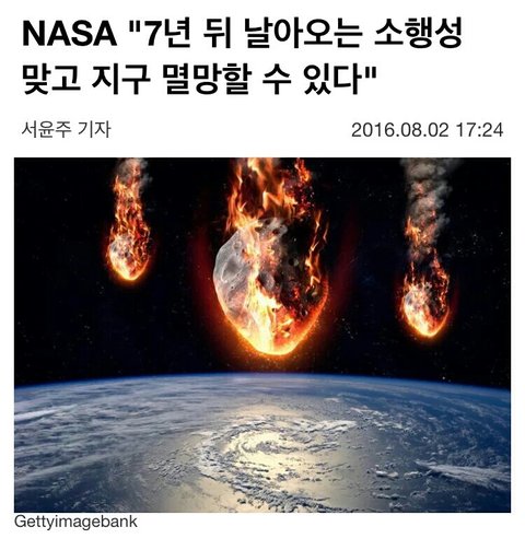 7년뒤 지구 멸망 가능성 기사 봤냐