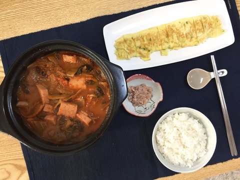 혼밥 - 스팸김치찌개, 달걀말이