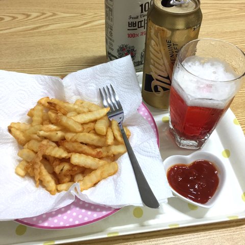 혼술 - 감자튀김, 석류초맥주