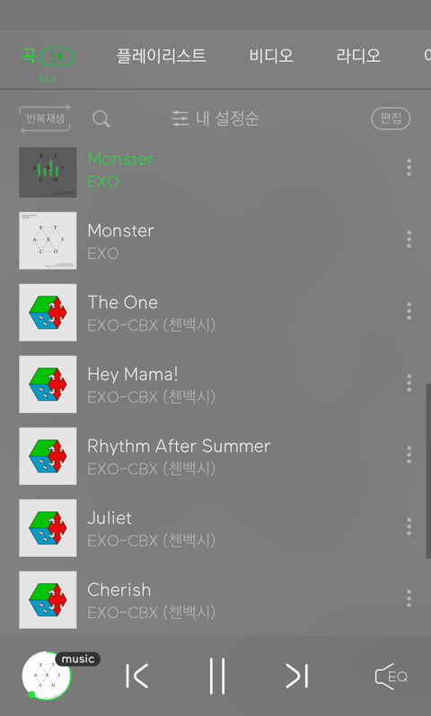 나 몬2 수록곡 1씩 첸백시 전곡 1씩 총16곡씩 돌리는데