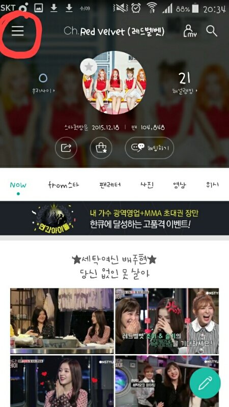 이 부분이 첫화면으로 뜨는데 동그라미 친 부분 눌러서