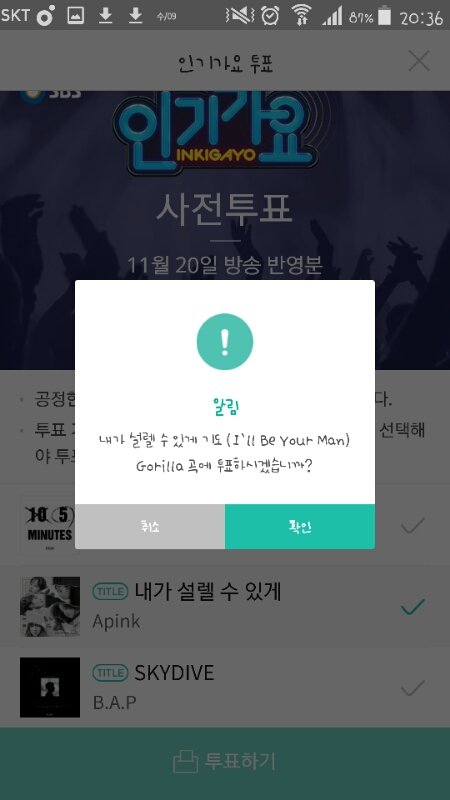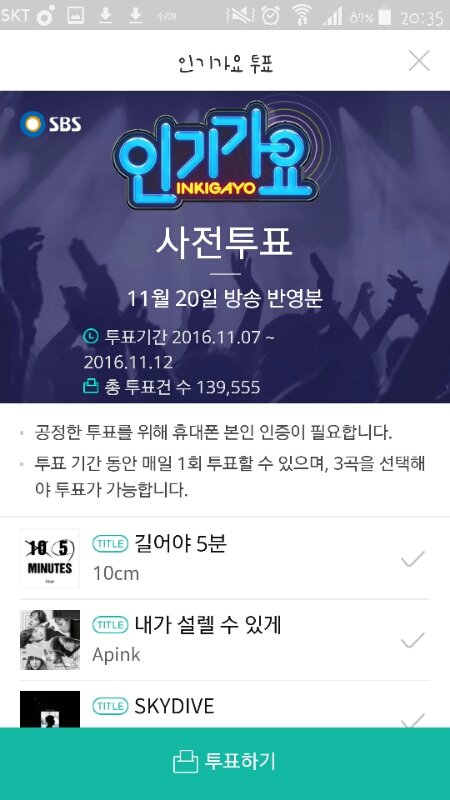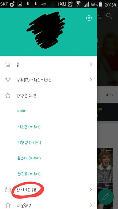 저기 인기가요 투표라고 보이지?? 거기로 들어가!